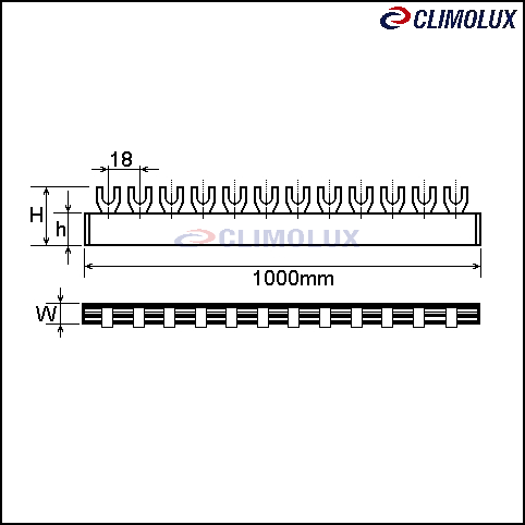 Forked busbar 1-pole 56M 1m, isolated