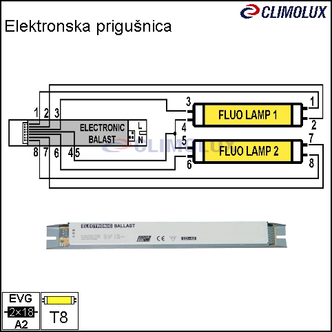 Elektronske predspojne naprave (prigušnice) namijenjene su za bilo koja rasvjetna tijela opremljena s fluocijevi T8 u ovisnosti od nazivne snage.Njihovom uporabom u rasvjetnom tijelu se smanjuje utrošak energije i raste vijek trajanja svjetlosnih izvora u odnosu na uporabu standardne magnetske predspojne naprave. Kada fluocijev dostigne kraj vijeka trajanja, elektronska predspojna naprava isključuje napajanje i prestaje neželjeno treperenje. Visokofrekvencijski izlaz sprječava “stroboskopski” efekt.