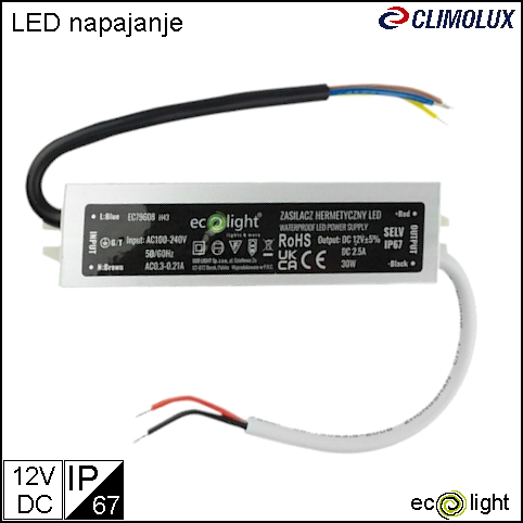 LED napajanje 12V 30W 2,5A IP67, metalno kućište, EC