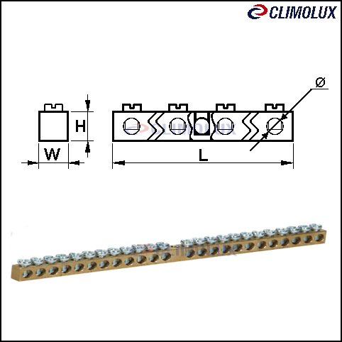 Tehnički podaci: max.63A, 230/400VAC, 15,9cm, W×H=6×9mm, d=4,5mm, 24×M4