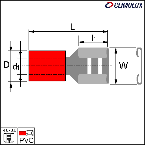 Faston stopica natična izolirana 4,8×0,8mm, 1,5mm2 crvena